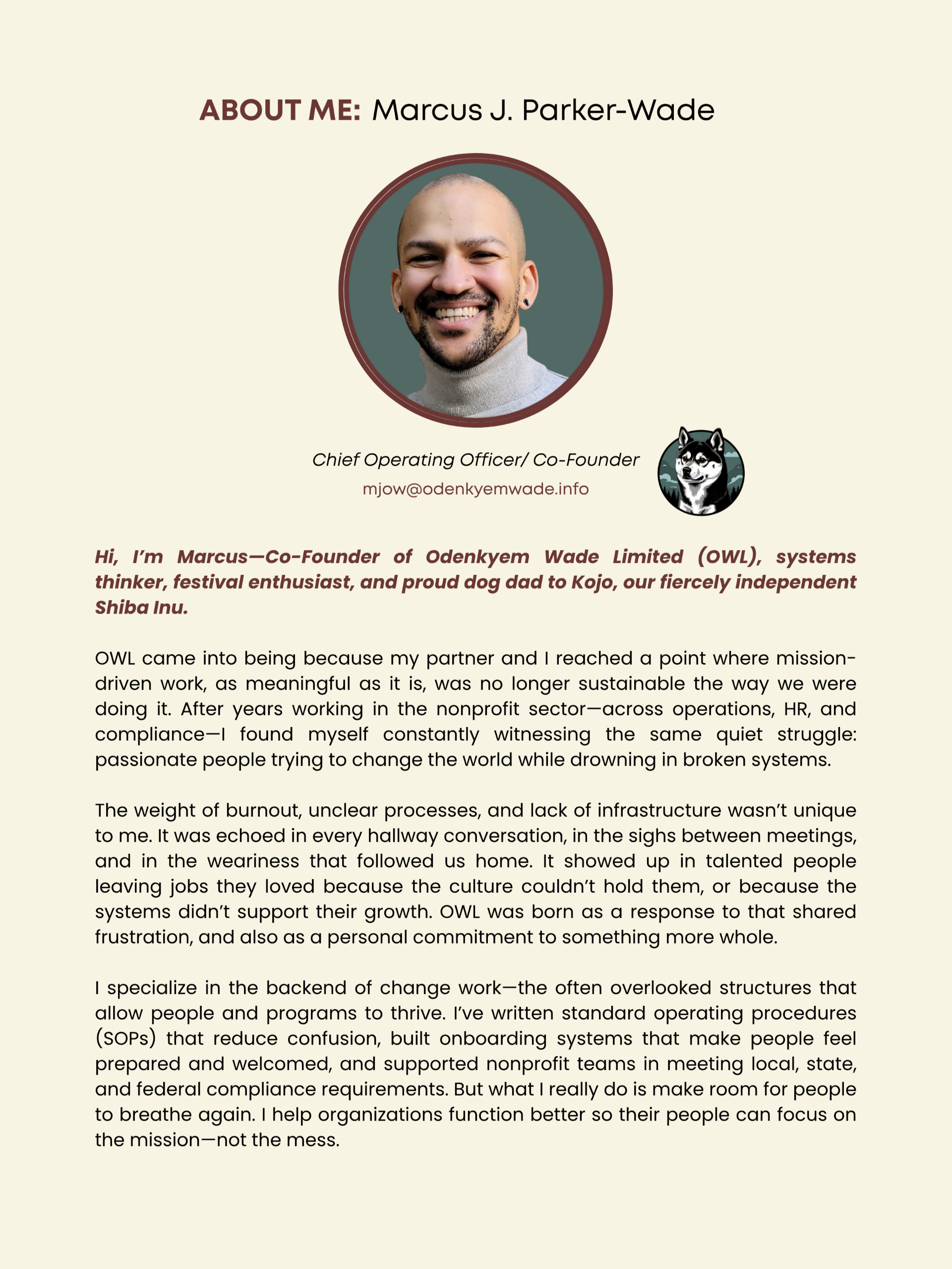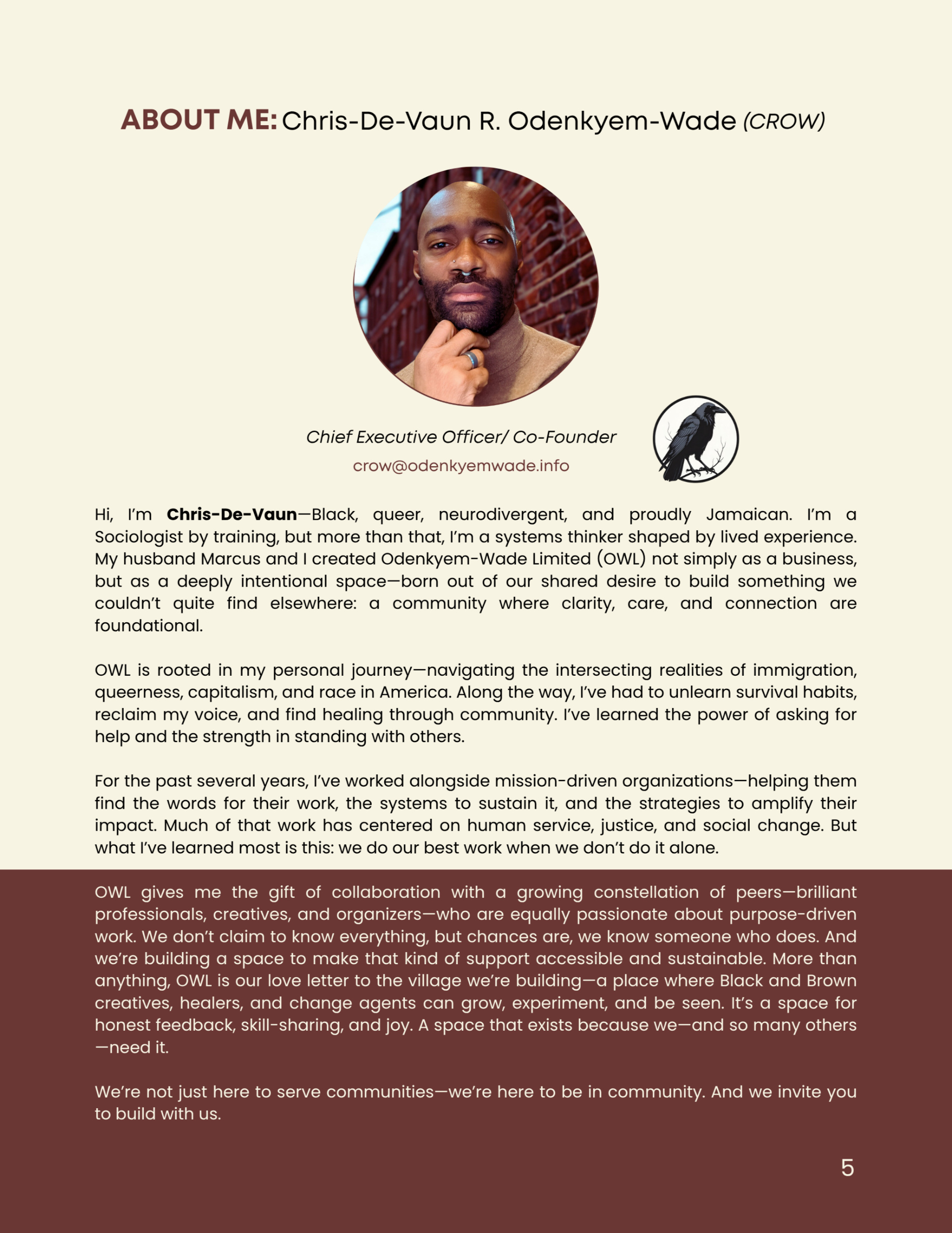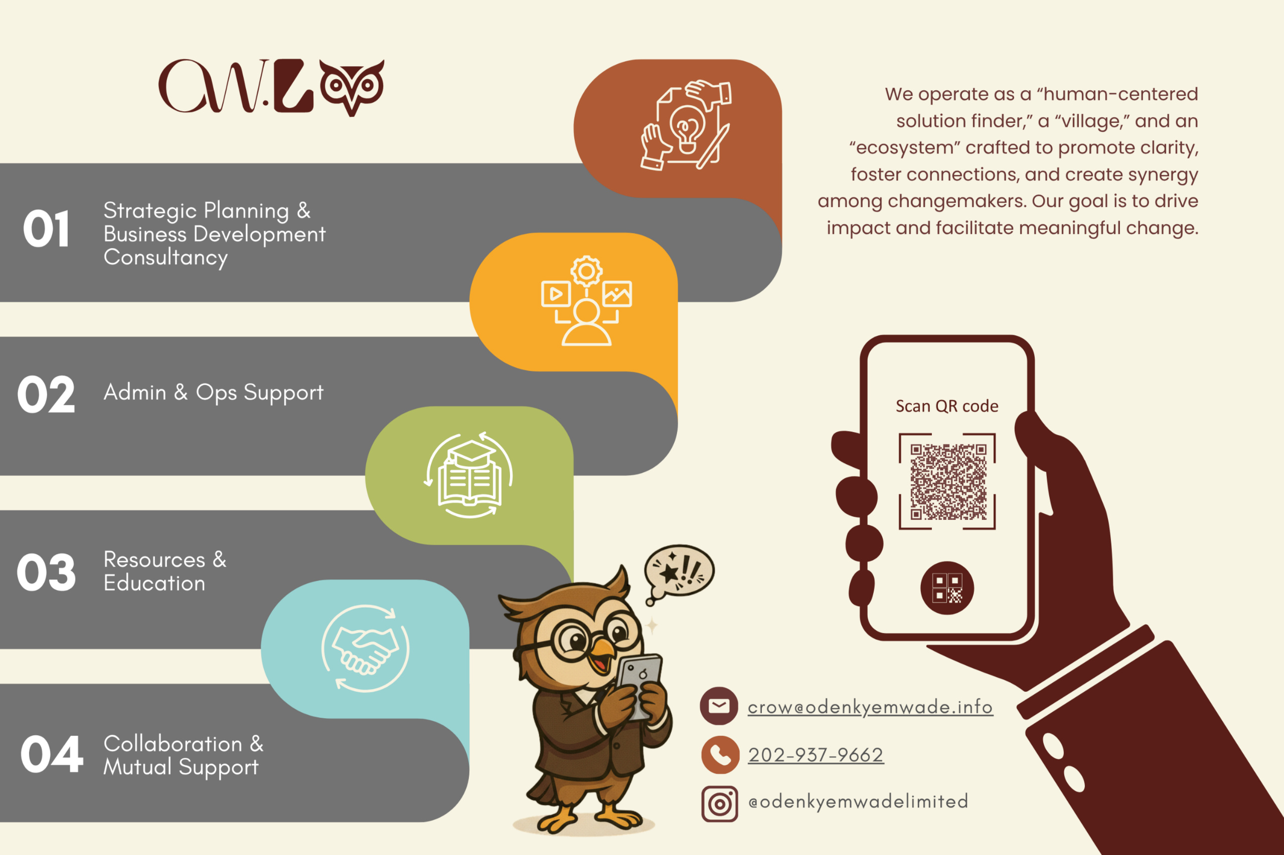At Odenkyem-Wade Limited (OWL), LLC, we take Carrd’s simplicity and push it further. While Carrd is known for its one-page designs, our team transforms those templates into multi-page, dynamic websites and portfolios - using creative design structures, embedded navigation, and connected sections, that evolve with your organization’s needs.