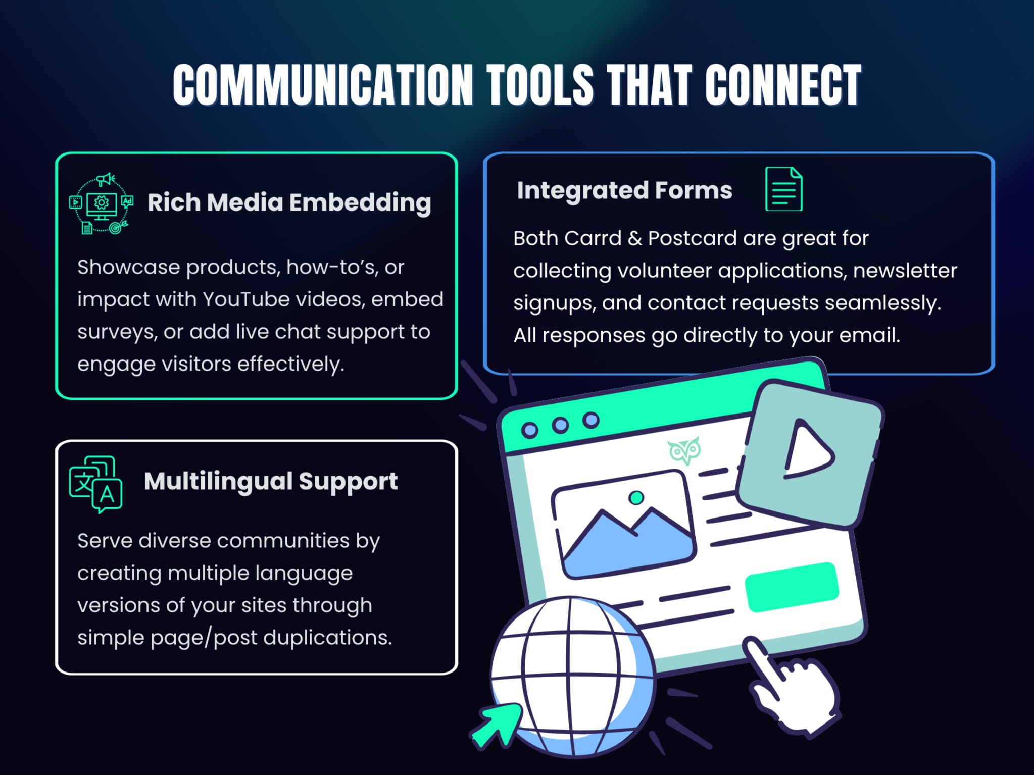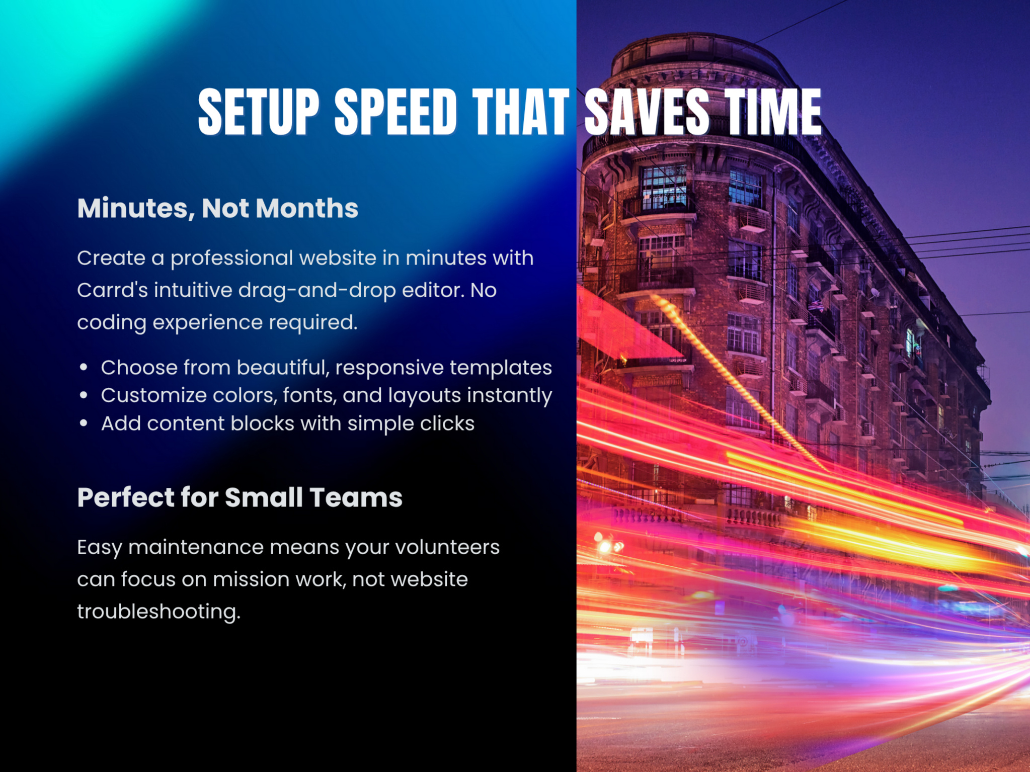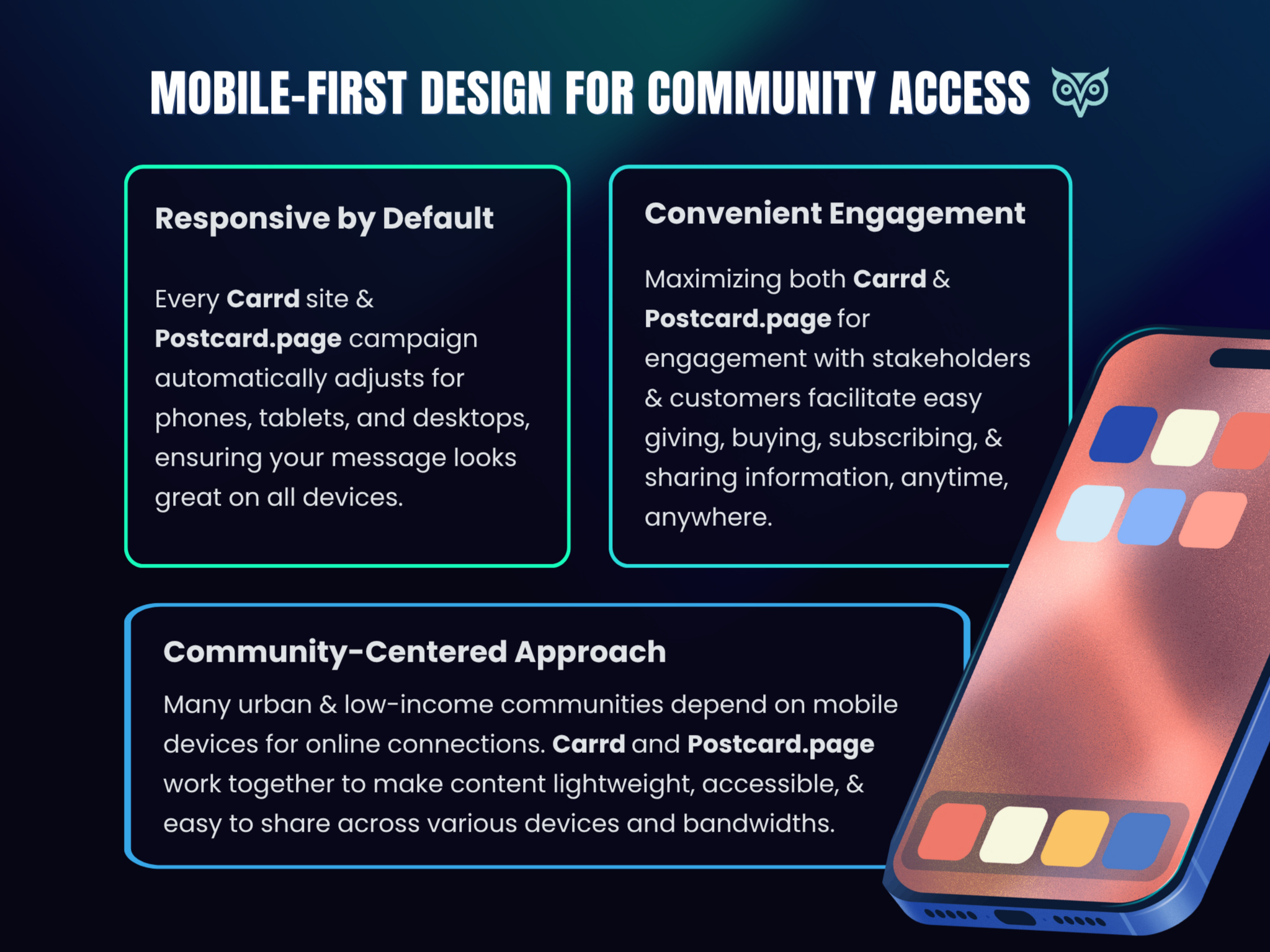 At Odenkyem-Wade Limited (OWL), LLC, we take Carrd’s simplicity and push it further. While Carrd is known for its one-page designs, our team transforms those templates into multi-page, dynamic websites and portfolios - using creative design structures, embedded navigation, and connected sections, that evolve with your organization’s needs.