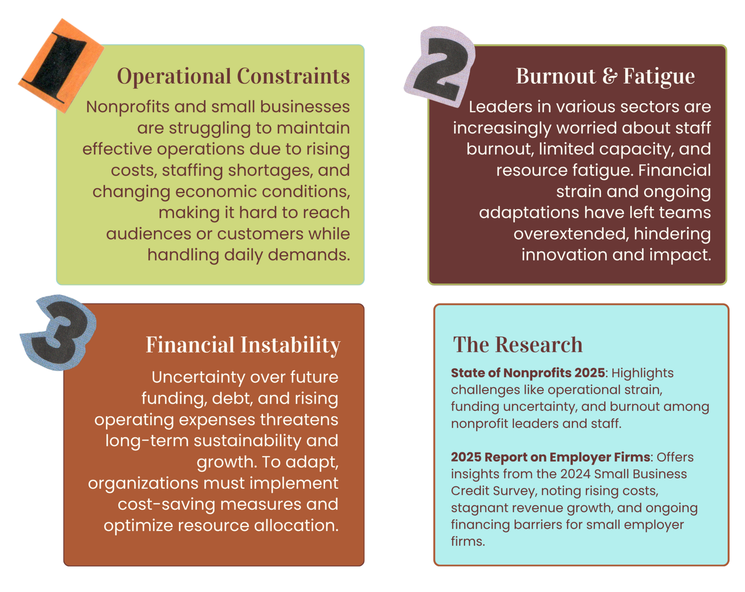 We believe nonprofits & small business owners deserve tools & strategies that make their work sustainable—not heavier. Our solutions include: intuitive systems that streamline operations, visual identities that communicate with clarity & purpose, and digital tools that expand functionality without overwhelming capacity.