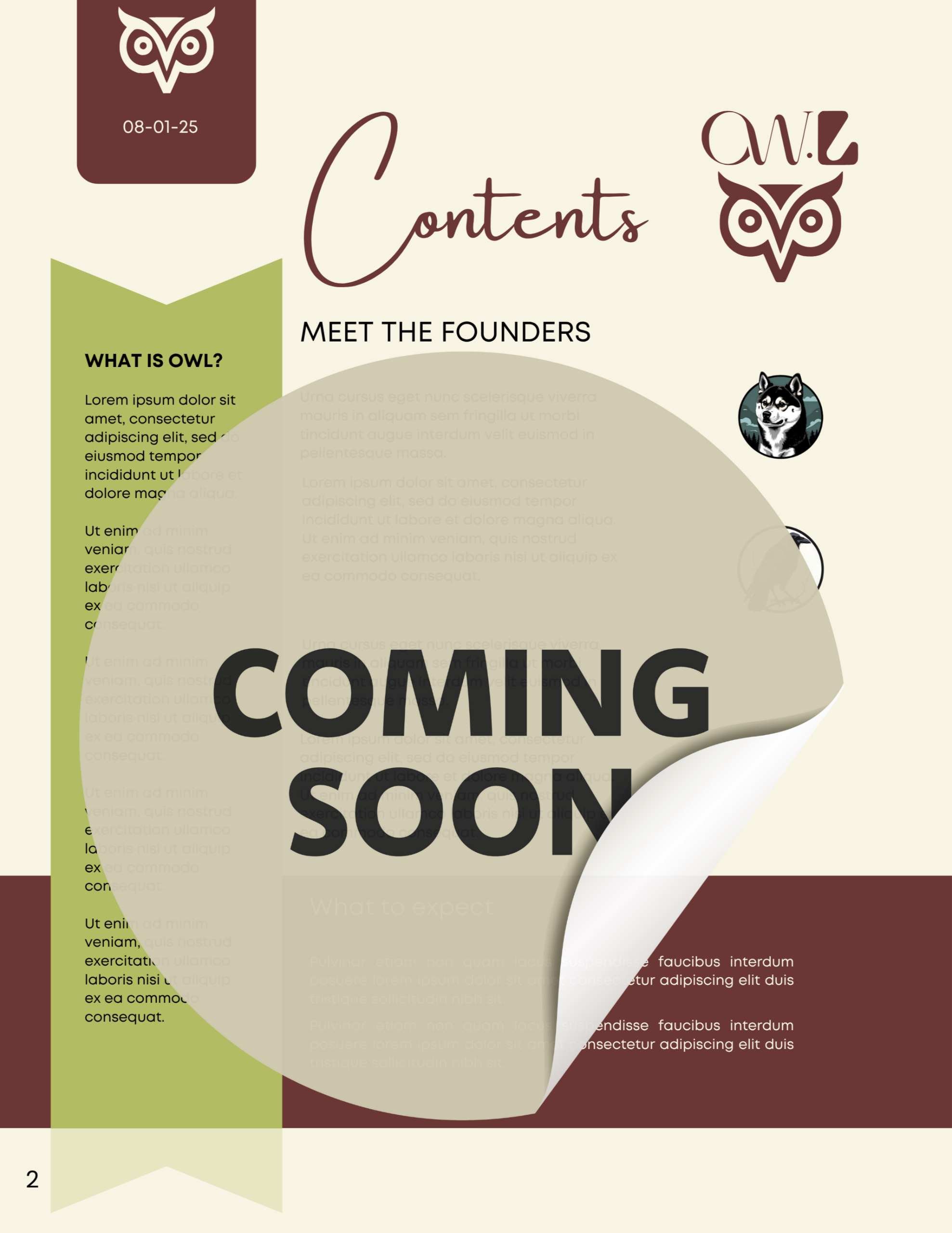 Postcard.page enhances audience engagement by pairing your landing page with well-designed, story-driven updates. It’s an effortless way to share newsletters, announcements, or project highlights.OWL has used Postcard.page as an accessible way to introduce ourselves and our philosophies, prior to building our landing page. Additionally, we will be using it to showcase our upcoming newsletter content (samples below).Get alerted when we roll out our first issue, by subscribing to our Postcard.